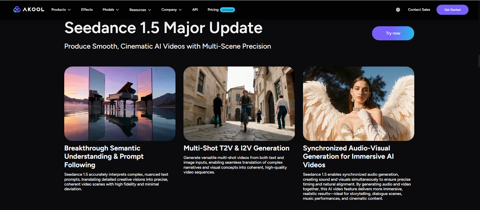 Integrado directamente en La suite de vídeos de IA de Akool, Seedance 1.5 Pro ofrece a los creadores, especialistas en marketing y narradores una forma rápida y flexible de convertir guiones, conceptos e imágenes en clips cinematográficos expresivos con diálogo, ambiente y música integrados.