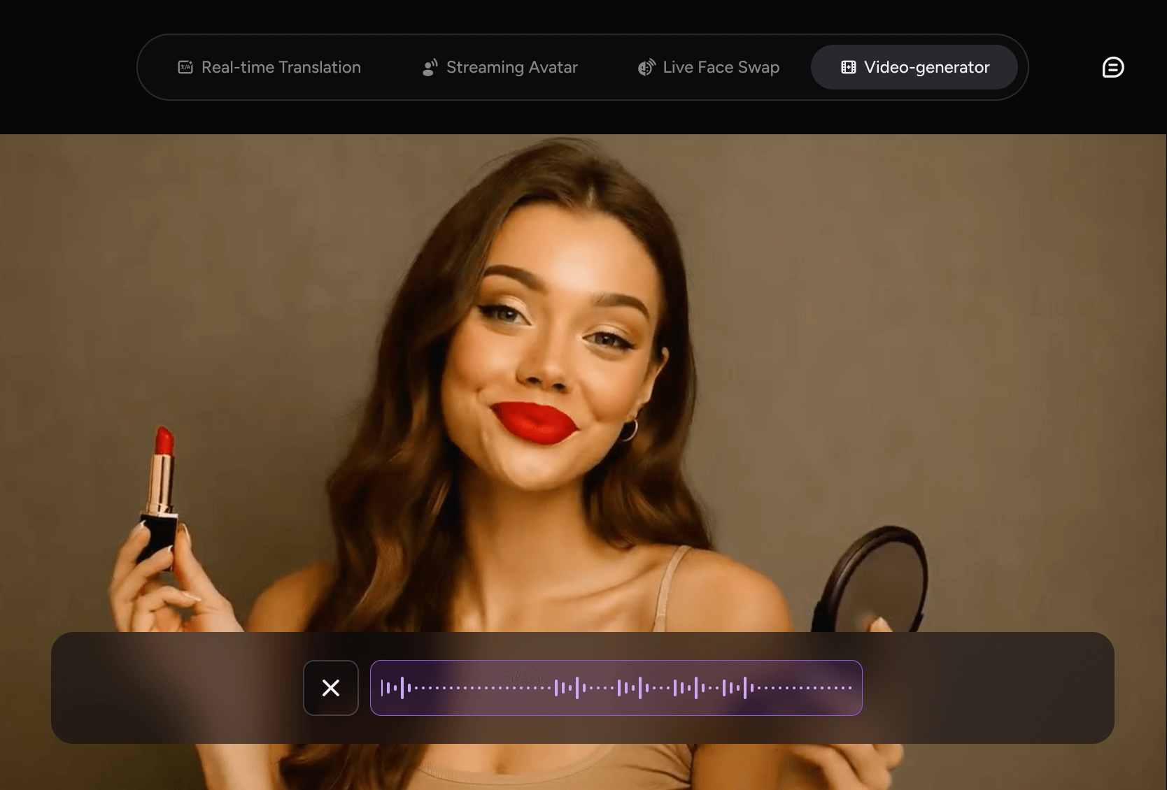 Core Functionality: During voice calls or live broadcasts, users spoken input is transformed in real time into synchronized, lip-synced video avatars or animated characters. This feature dynamically generates facial expressions and mouth movements to match the audio, delivering an immersive and expressive visual experience—no camera required.