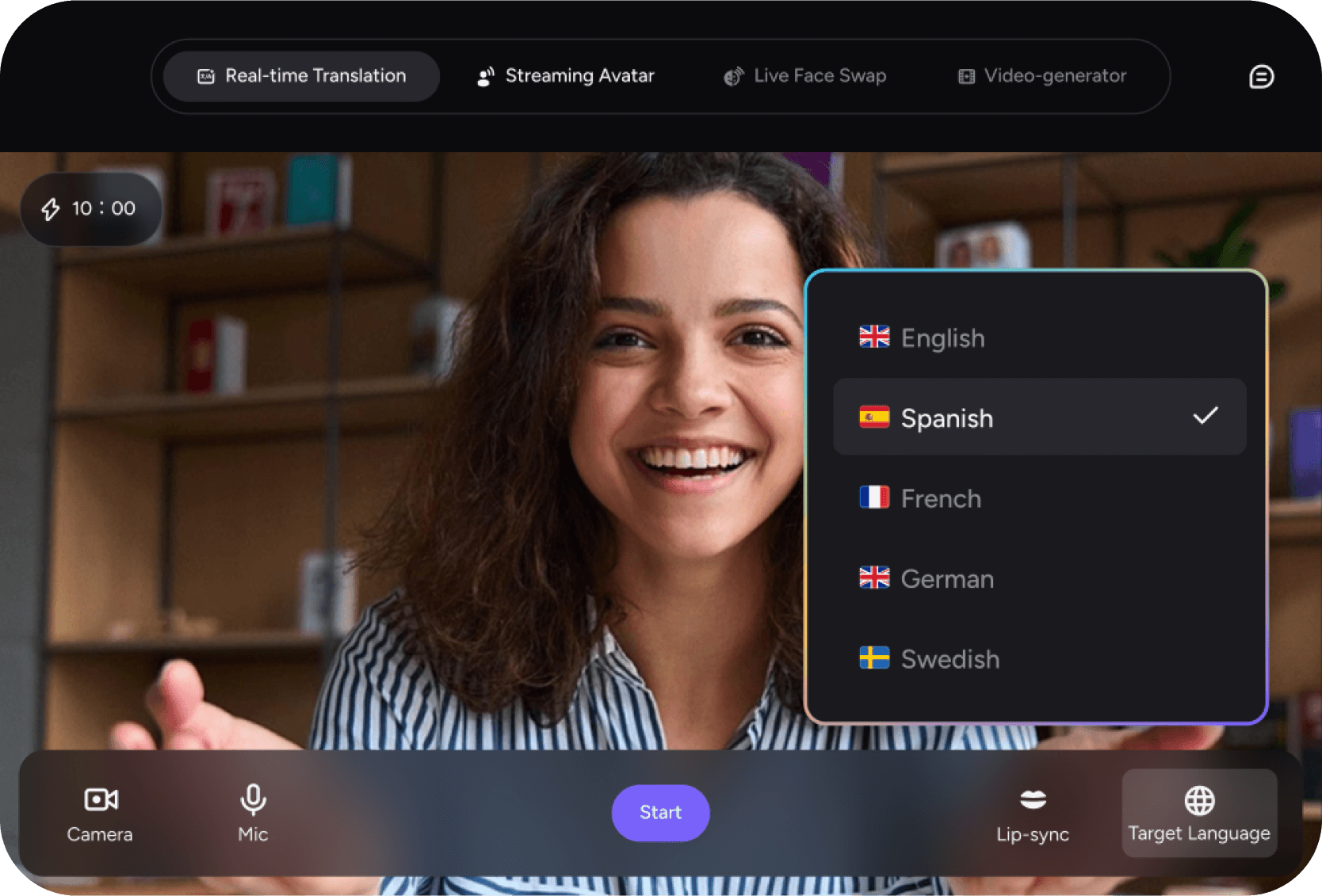 Not only do we support adding subtitles, but we can also directly translate the original video subtitles into the target language.Real-time Lip-Sync