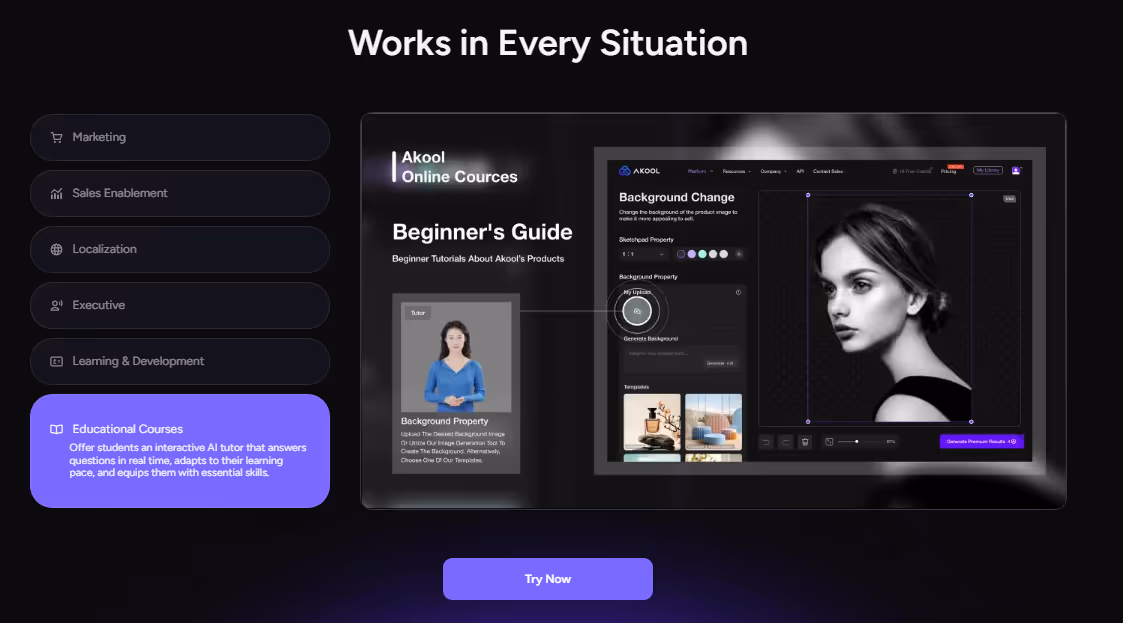 制作 专业视频课程 通常需要拍摄、剪辑和技术专业知识。使用 Akool,脚本可以在几分钟内变成完成的视频。教师可以扩展内容创作,无需工作室或摄像机即可制作完整的 AI 课程模块。更新就像编辑文本和重新生成视频一样简单。