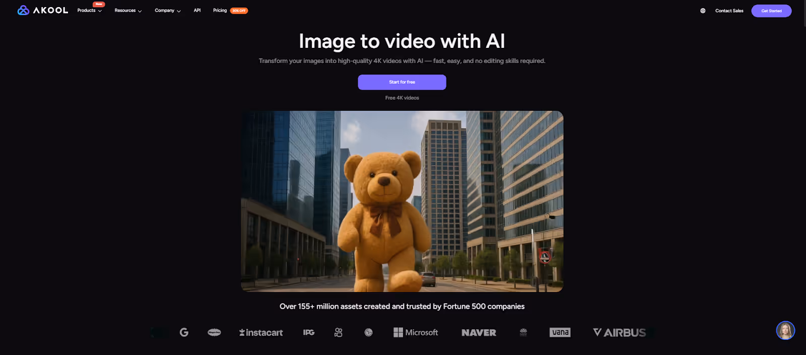 Akool 的图像转视频 静止图像或概述转换为动态视频序列系列。对于创作者来说,它就像数码摄影组和视觉效果团队整合到一个人智能驱动的工具中。